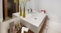 и ванной комнатой с ванной и феном.